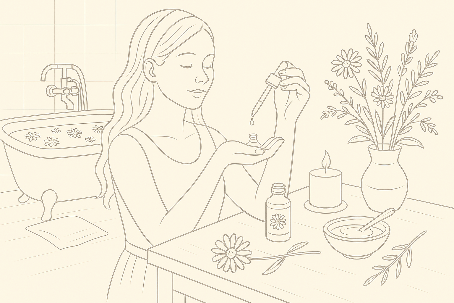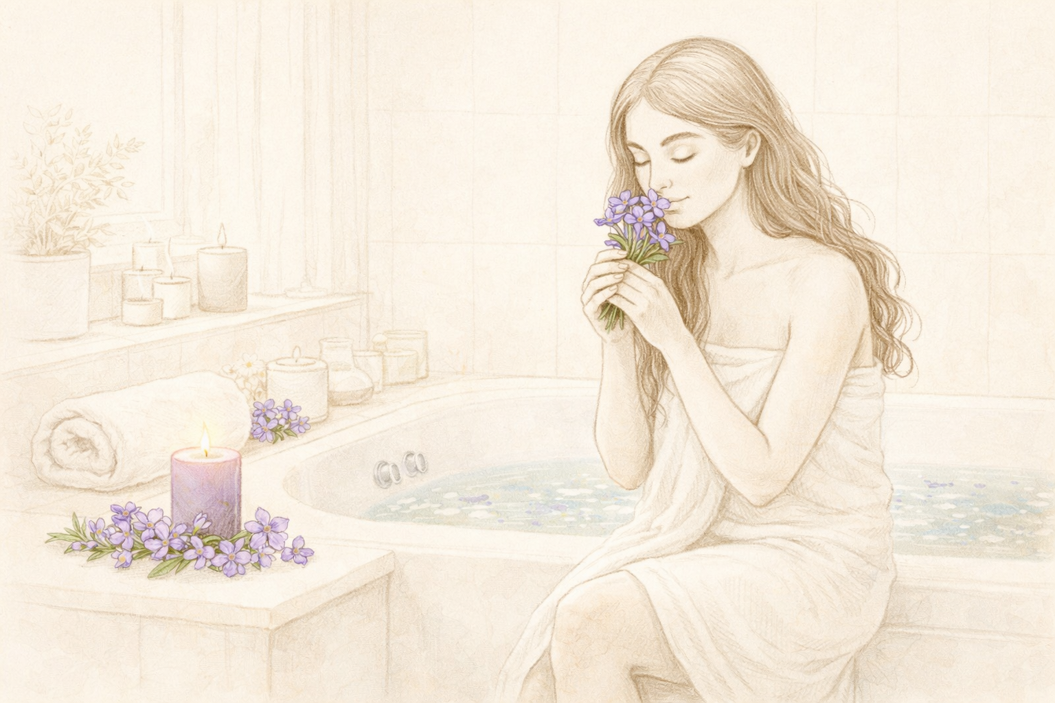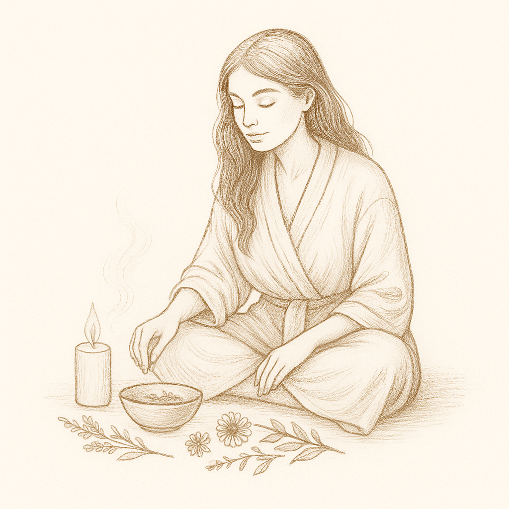 Rituál začíná přípravou prostoru. Můžeš zapálit svíčku, pustit klidnou hudbu nebo si dopřát teplou koupel.